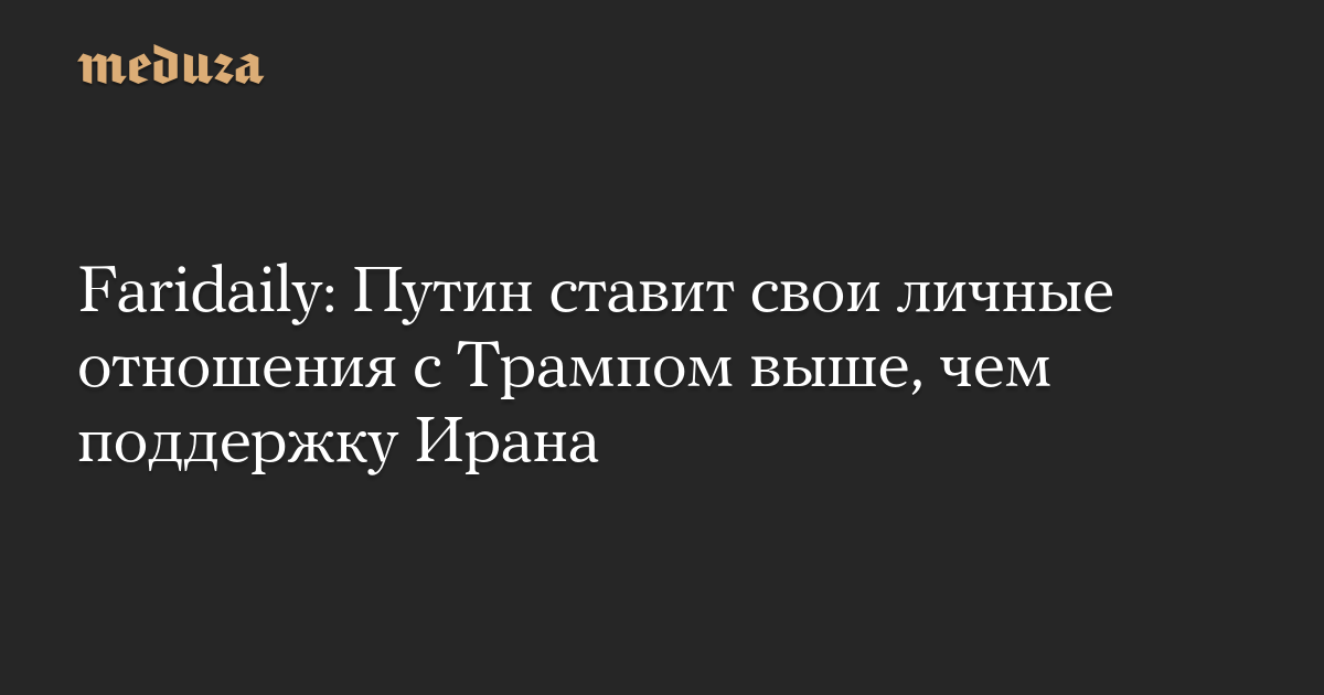 Faridaily: Путин ставит свои личные отношения с Трампом выше, чем поддержку Ирана