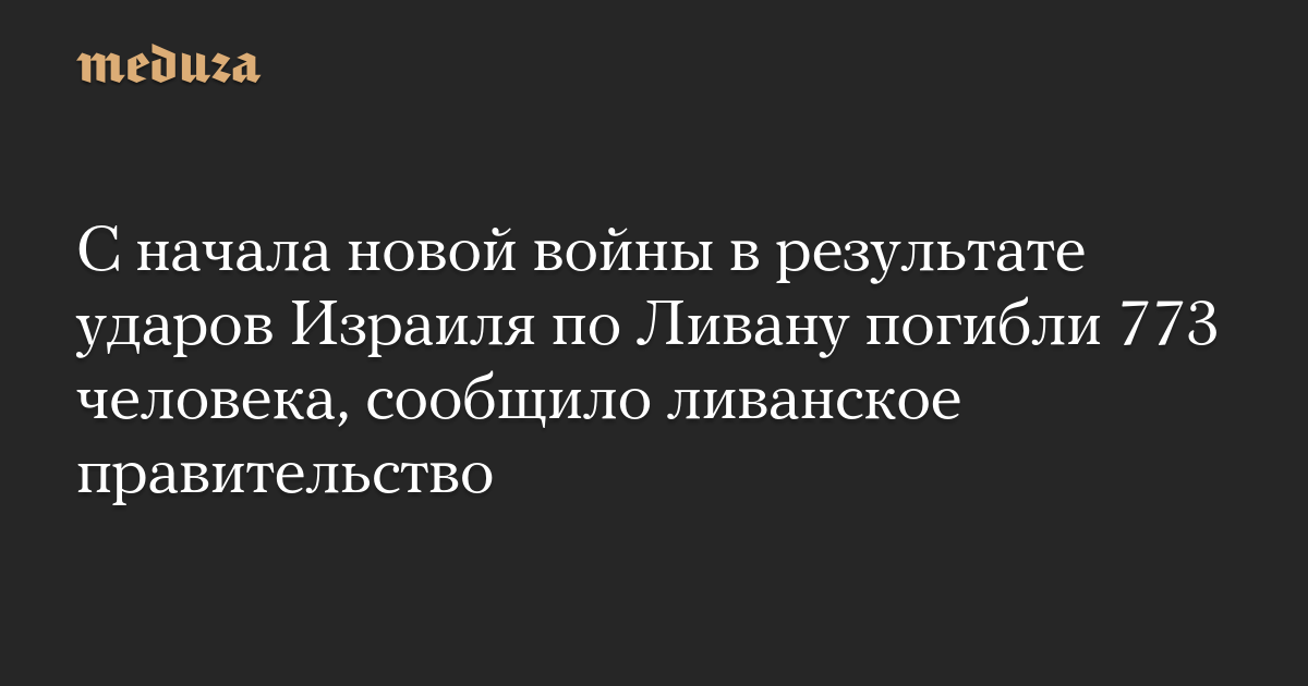 С начала новой войны в результате ударов Израиля по Ливану погибли 773 человека, сообщило ливанское правительство