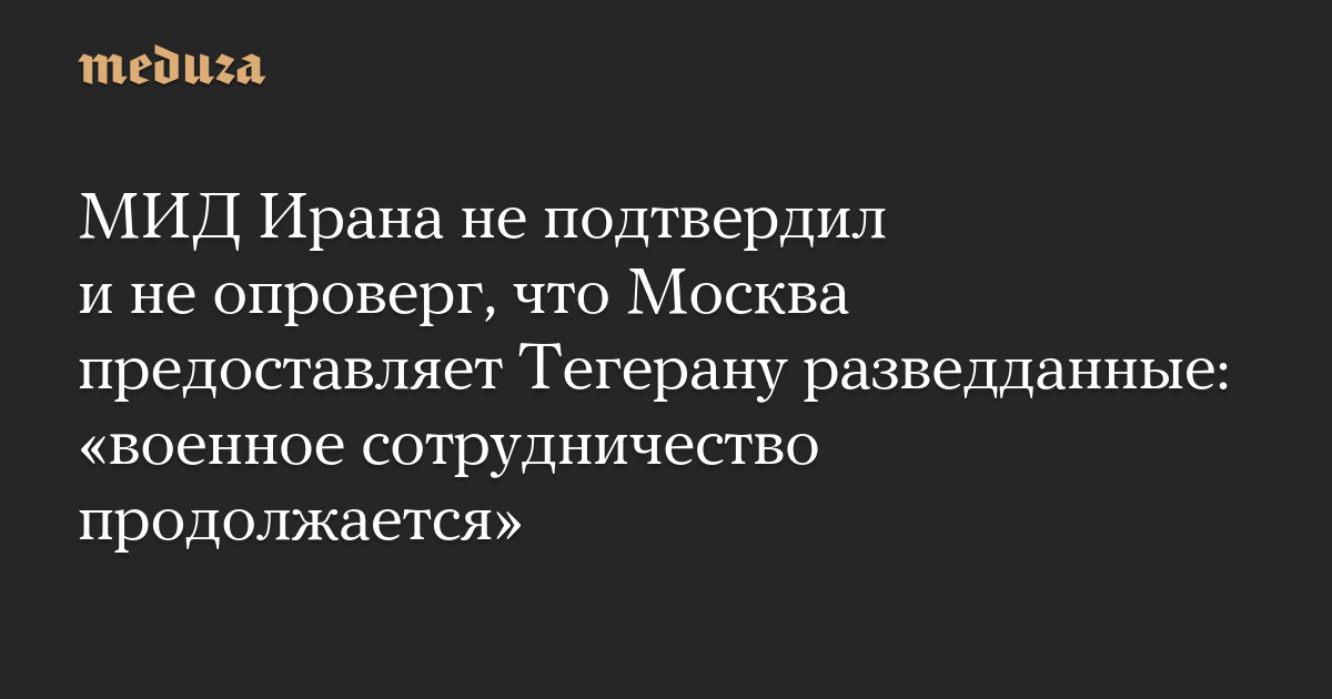 МИД Ирана не подтвердил и не опроверг, что Москва предоставляет Тегерану разведданные: «военное сотрудничество продолжается»