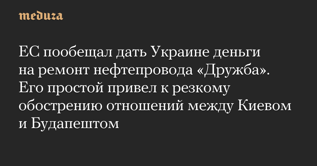 ЕС пообещал дать Украине деньги на ремонт нефтепровода «Дружба». Его простой привел к резкому обострению отношений между Киевом и Будапештом