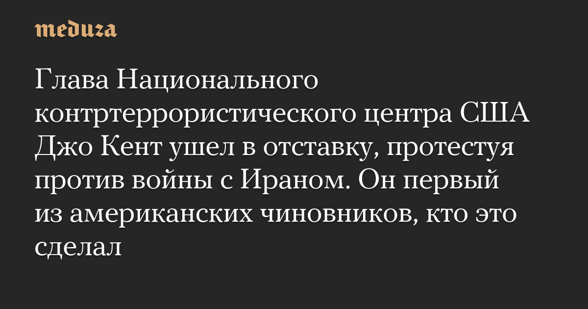 Глава Национального контртеррористического центра США Джо Кент ушел в отставку, протестуя против войны с Ираном. Он первый из американских чиновников, кто это сделал