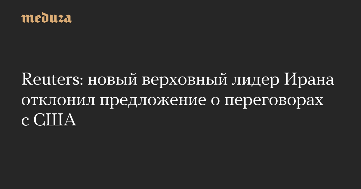 Новый верховный лидер Ирана Моджтаба Хаменеи отказался принять предложение о мирных переговорах с США, переданное через двух посредников. Об этом, пишет The Times of Israel, агентству Reuters на условиях анонимности сообщил высокопоставленный представитель руководства Ирана.