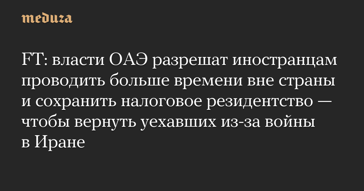 FT: власти ОАЭ разрешат иностранцам проводить больше времени вне страны и сохранить налоговое резидентство — чтобы вернуть уехавших из-за войны в Иране
