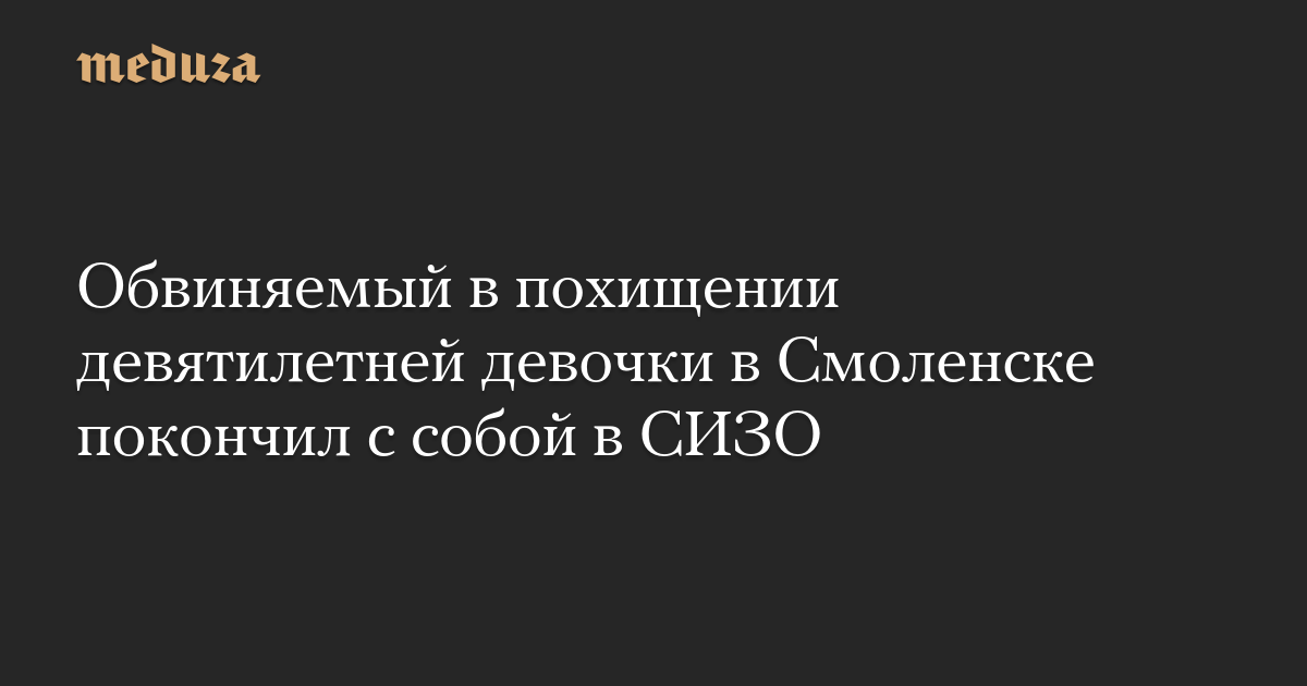 Сергей Грищенков, обвиняемый в похищении девятилетней девочки в Смоленске, покончил с собой в СИЗО, сообщили ТАСС и близкие к силовикам телеграм-каналы «База», Mash и Shot.