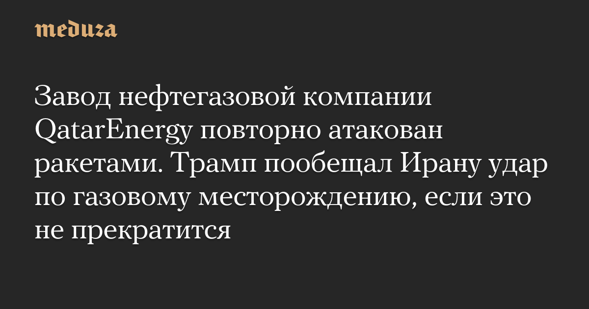 Завод нефтегазовой компании QatarEnergy повторно атакован ракетами. Трамп пообещал Ирану удар по газовому месторождению, если это не прекратится