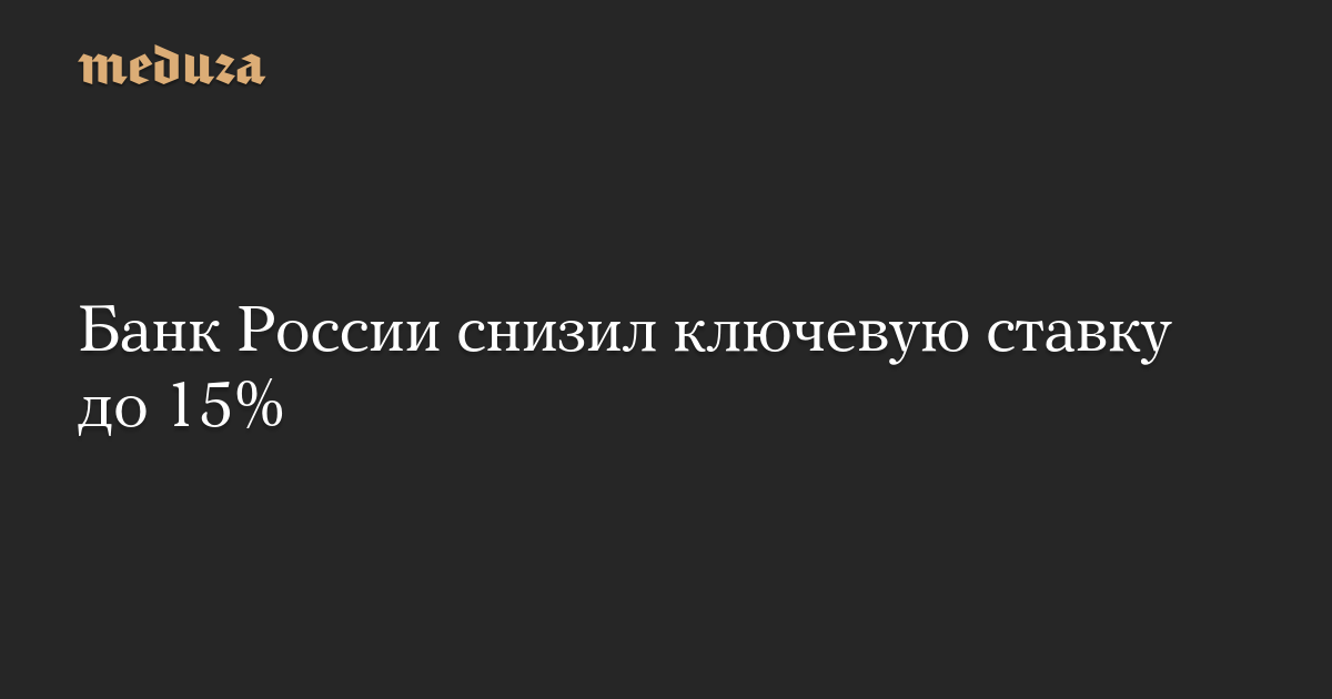 Совет директоров Банка России принял решение снизить ключевую ставку на 50 базисных пунктов — до 15%. Об этом сообщается на сайте регулятора.