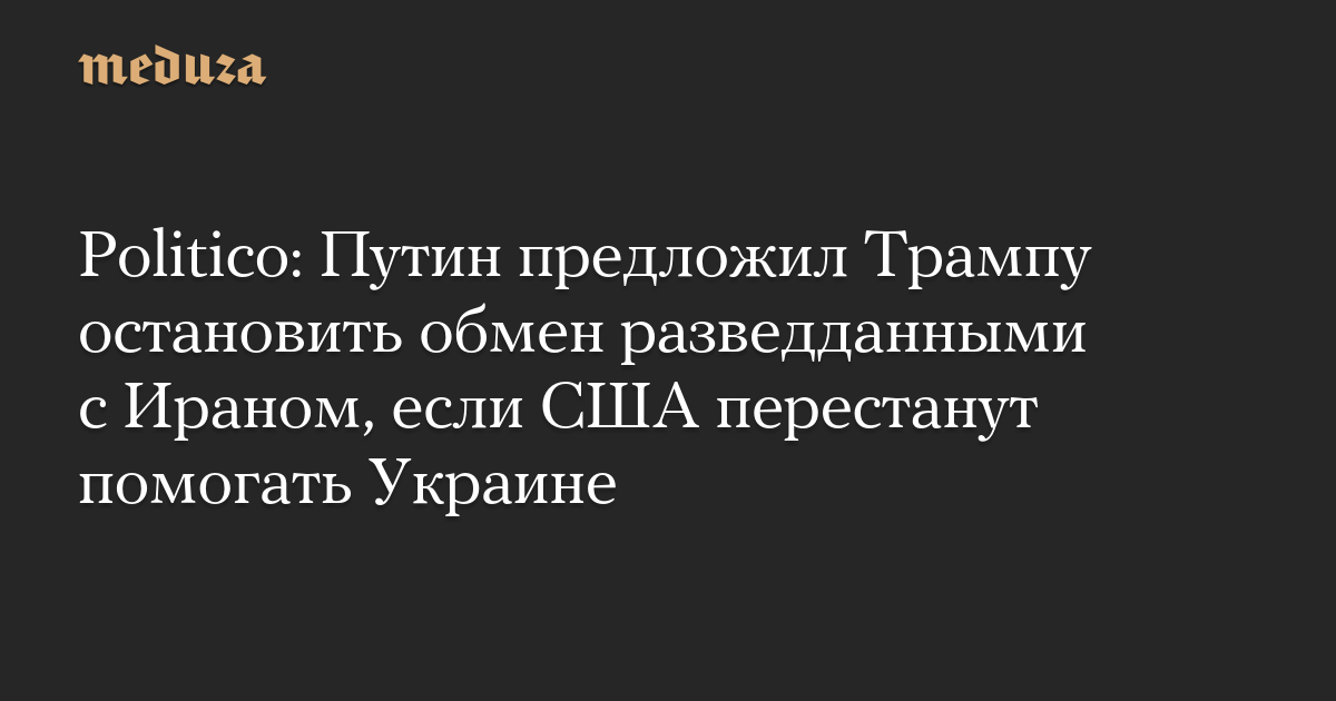 Politico: Путин предложил Трампу остановить обмен разведданными с Ираном, если США перестанут помогать Украине