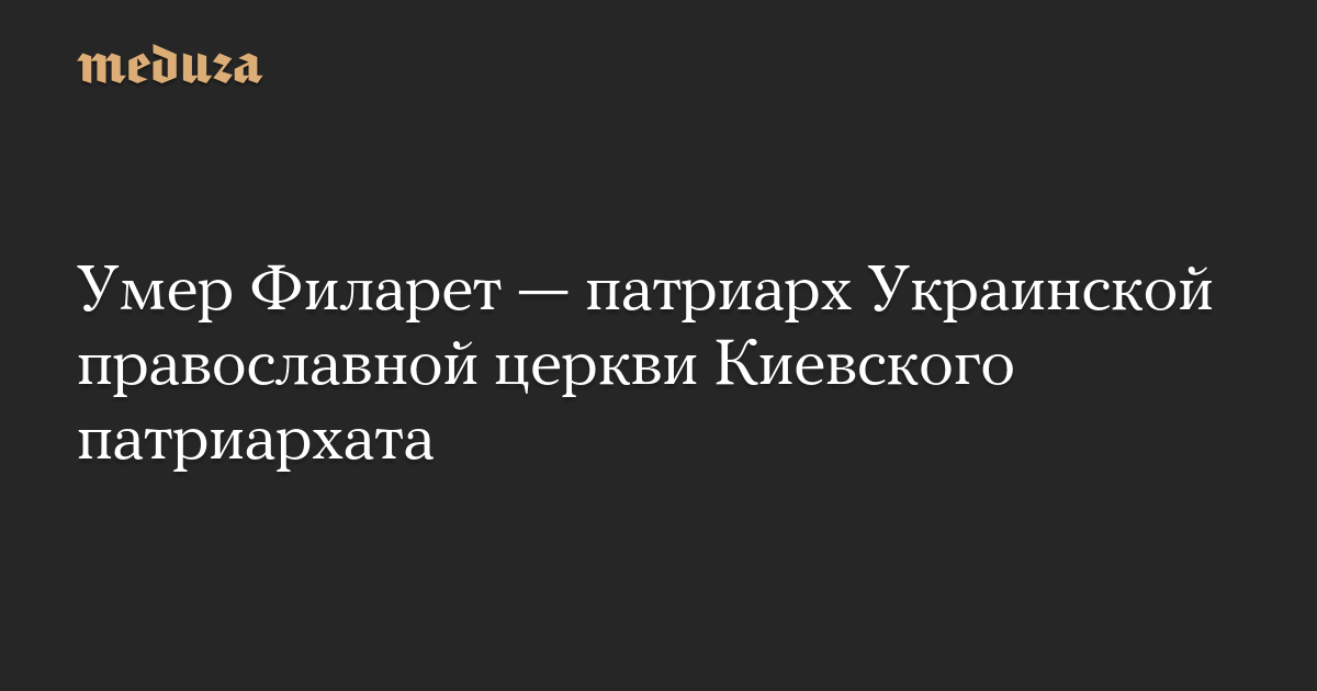 Патриарх Украинской православной церкви Киевского патриархата Филарет (Михаил Денисенко) умер в возрасте 97 лет. О его смерти сообщил митрополит Епифаний.