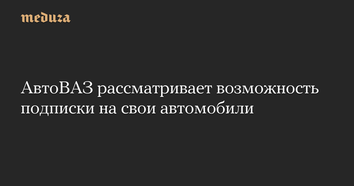 АвтоВАЗ может ввести подписку на свои автомобили. «Мы просчитываем такой бизнес-кейс», — сообщили ТАСС в пресс-службе автопроизводителя.