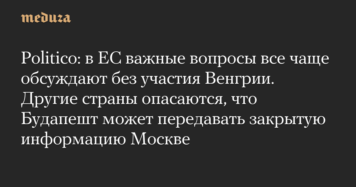 Politico: в ЕС важные вопросы все чаще обсуждают без участия Венгрии. Другие страны опасаются, что Будапешт может передавать закрытую информацию Москве