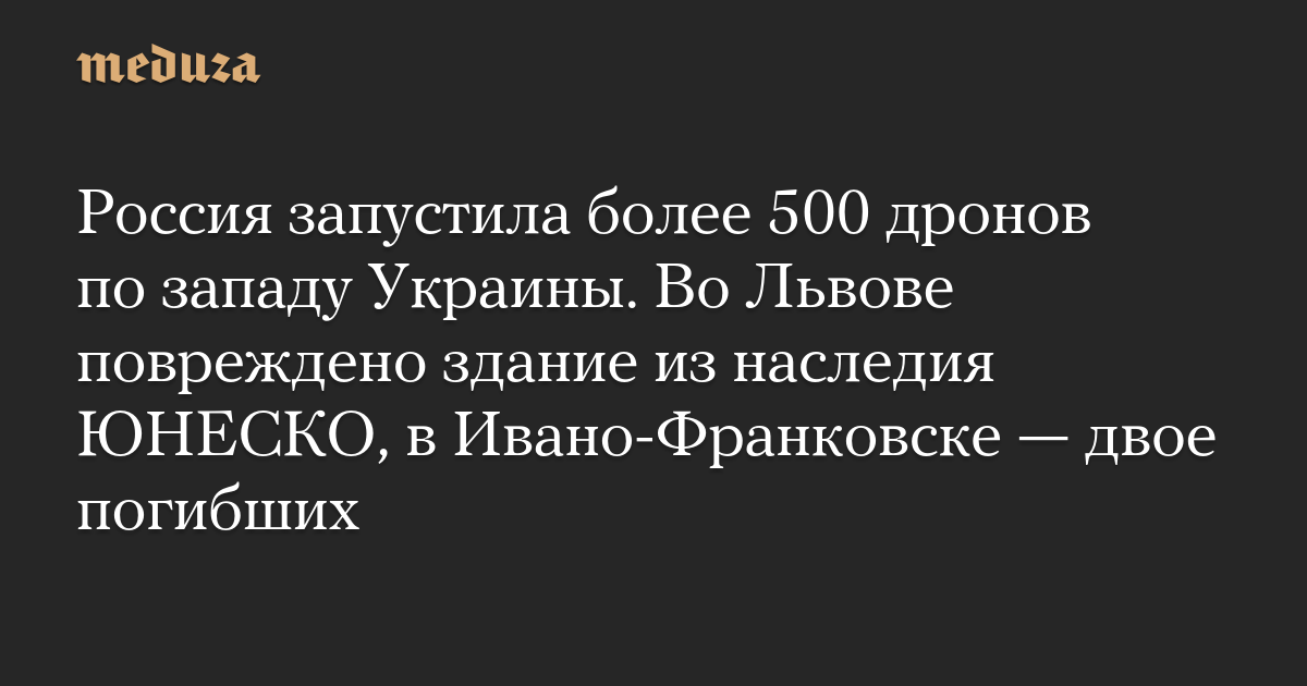 Россия запустила более 500 дронов по западу Украины. Во Львове повреждено здание из наследия ЮНЕСКО, в Ивано-Франковске — двое погибших