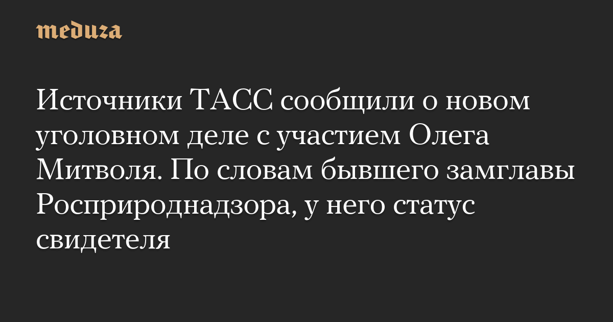 Источники ТАСС сообщили о новом уголовном деле с участием Олега Митволя. По словам бывшего замглавы Росприроднадзора, у него статус свидетеля