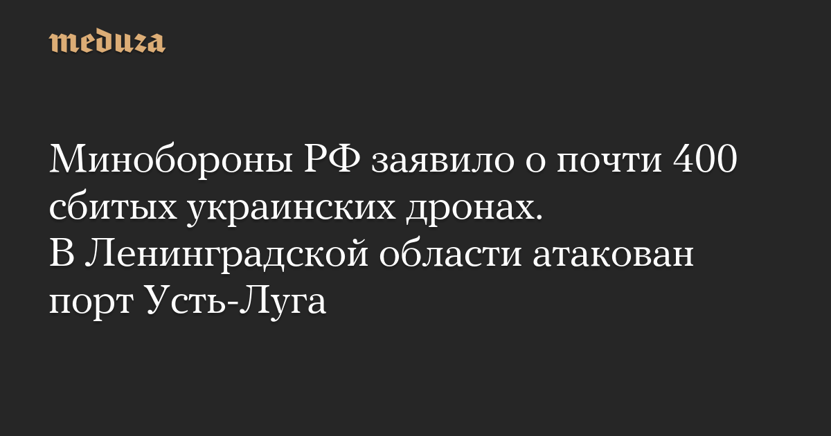 Минобороны РФ заявило о почти 400 сбитых украинских дронах. В Ленинградской области атакован порт Усть-Луга