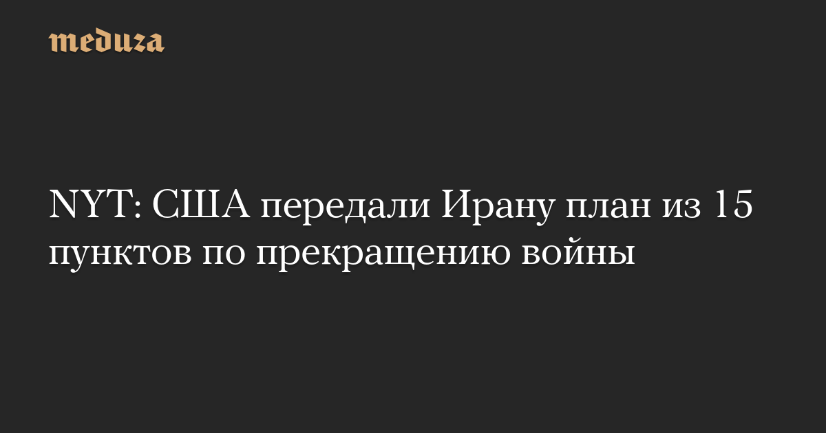 Соединенные Штаты подготовили и передали властям Ирана через посредников план по прекращению войны, пишет The New York Times со ссылкой на информированные источники.