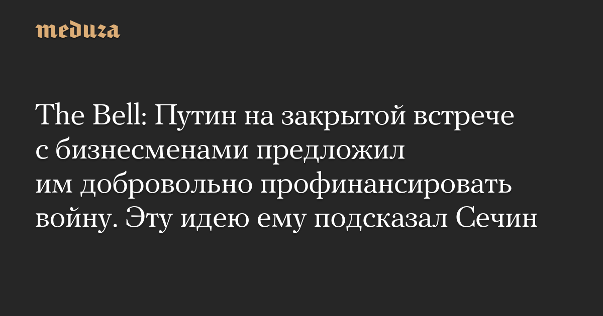 The Bell: Путин на закрытой встрече с бизнесменами предложил им добровольно профинансировать войну. Эту идею ему подсказал Сечин