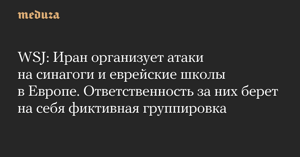 WSJ: Иран организует атаки на синагоги и еврейские школы в Европе. Ответственность за них берет на себя фиктивная группировка