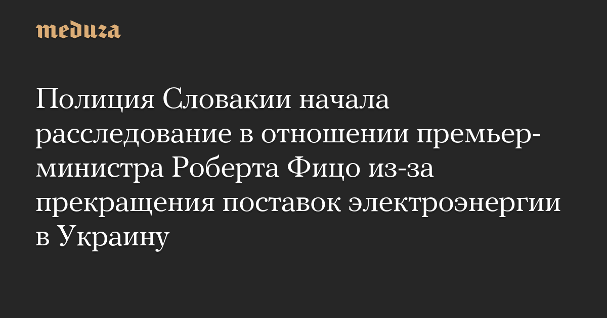 Полиция Словакии начала расследование в отношении премьер-министра Роберта Фицо из-за прекращения поставок электроэнергии в Украину
