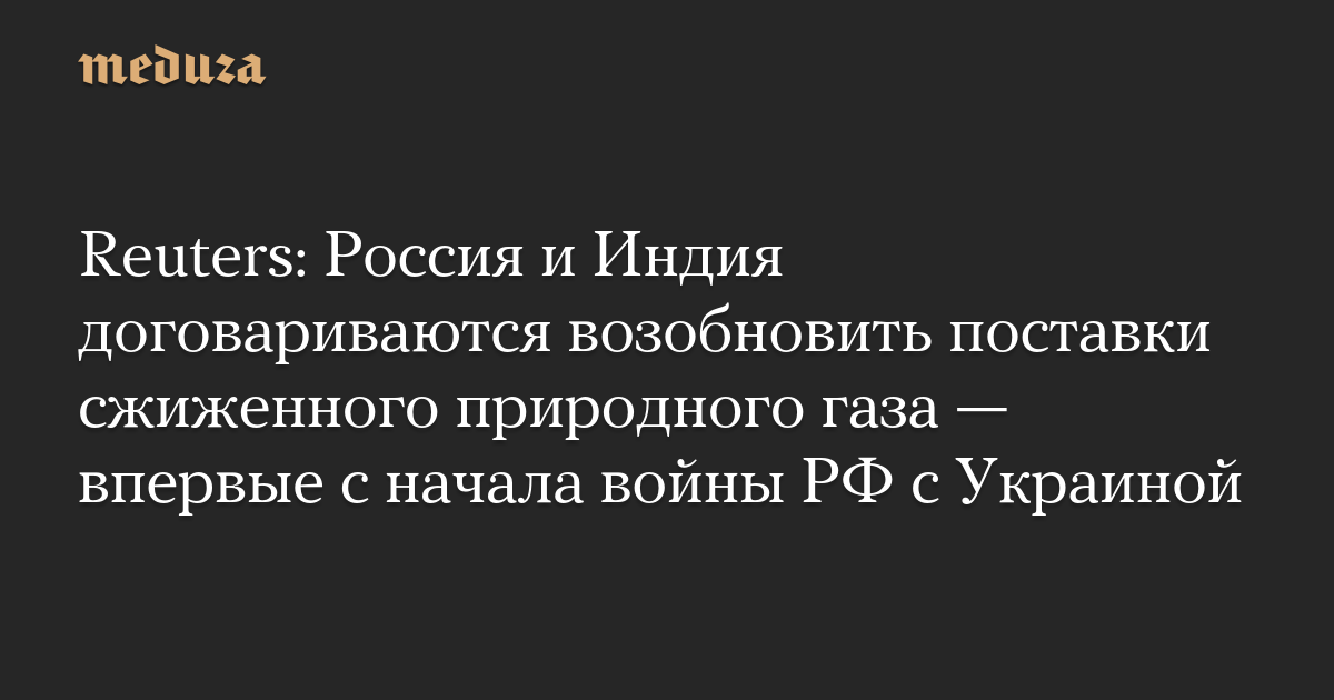 Reuters: Россия и Индия договариваются возобновить поставки сжиженного природного газа — впервые с начала войны РФ с Украиной