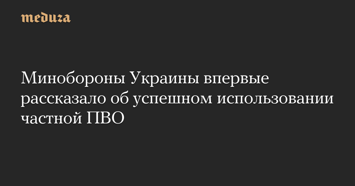 Минобороны Украины впервые рассказало об успешном использовании частной ПВО