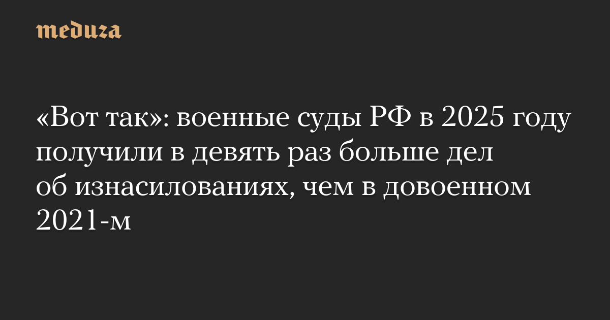 «Вот так»: военные суды РФ в 2025 году получили в девять раз больше дел об изнасилованиях, чем в довоенном 2021-м