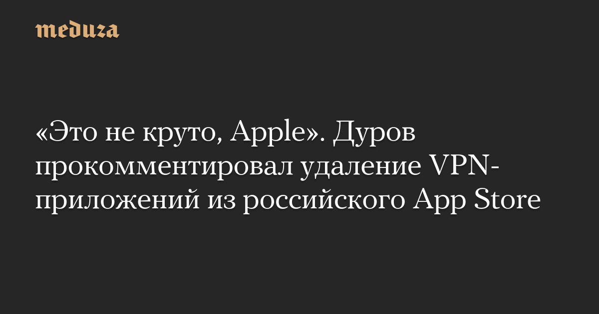 «Компания Apple только что удалила несколько VPN-приложений из российского App Store — в частности те, которые помогали пользователям обходить цензуру на основе DPI в России. Это не круто, Apple», — написал Дуров в соцсети икс, комментируя статью издания techradar.