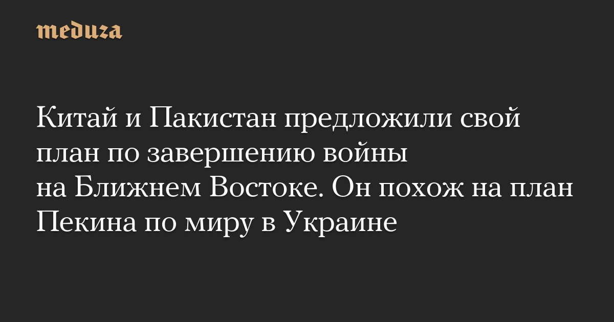Китай и Пакистан предложили свой план по завершению войны на Ближнем Востоке. Он похож на план Пекина по миру в Украине