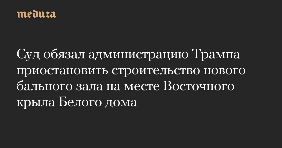 Судья окружного суда США Ричард Леон постановил, что строительство бального зала на месте Восточного крыла Белого дома должно быть остановлено до тех пор, пока не будет получено одобрение конгресса.