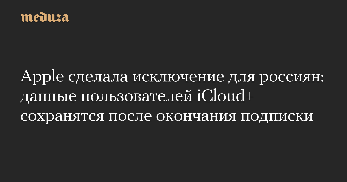 Как обратило внимание издание «Код Дурова», Apple сохранила для пользователей из России доступ к контенту после окончания подписки iCloud+. «Ваши данные останутся доступными после окончания подписки. Вы сможете по-прежнему управлять своим хранилищем и скачивать фотографии и видео в iCloud», — сообщается на сайте Apple.