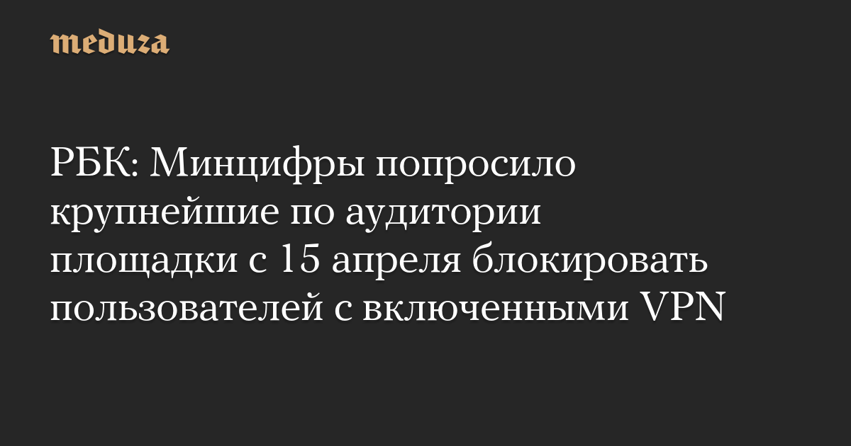 РБК: Минцифры попросило крупнейшие по аудитории площадки с 15 апреля блокировать пользователей с включенными VPN