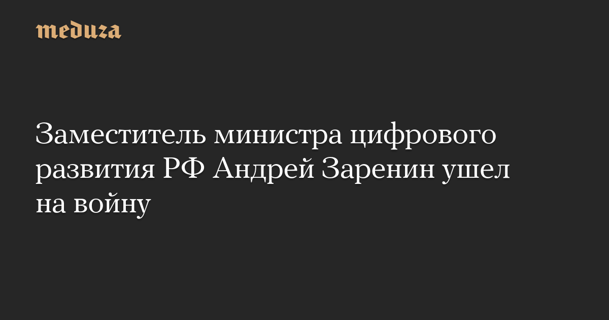 Заместитель главы Минцифры РФ Андрей Заренин, курирующий в министерстве направление радиоэлектроники, решил уйти добровольцем на российско-украинскую войну, сообщает «Коммерсант» 2 апреля.