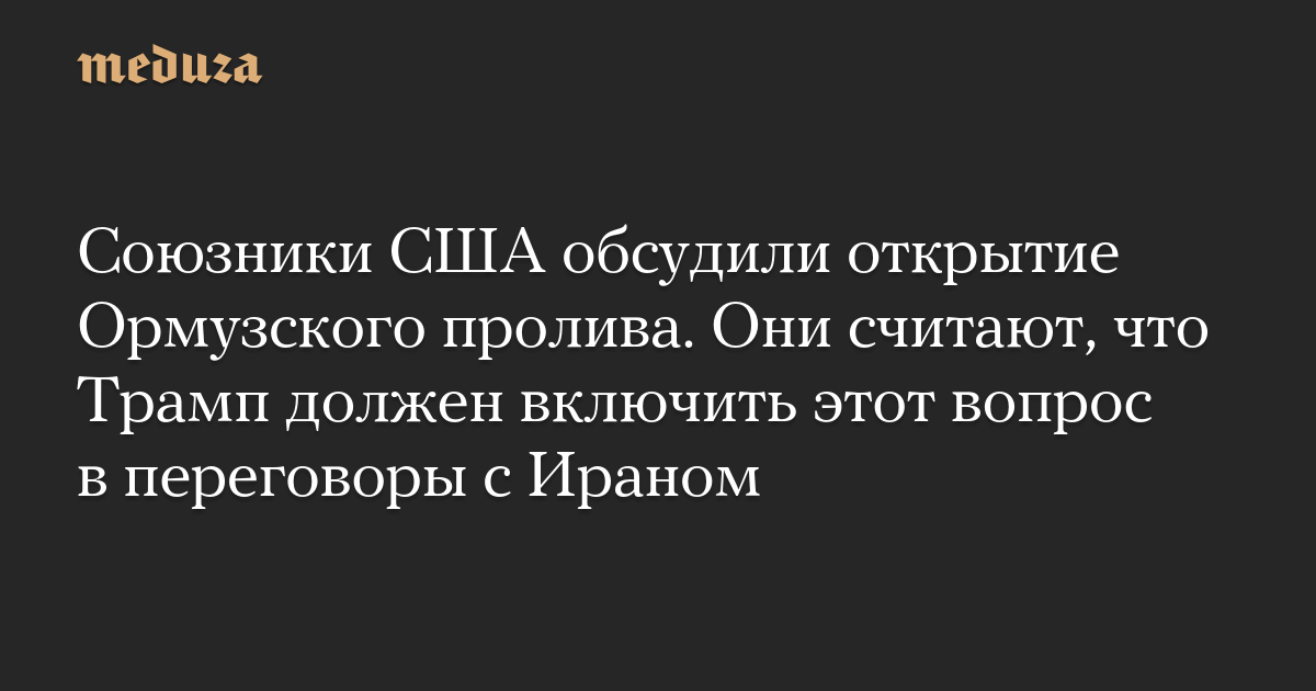 Союзники США обсудили открытие Ормузского пролива. Они считают, что Трамп должен включить этот вопрос в переговоры с Ираном