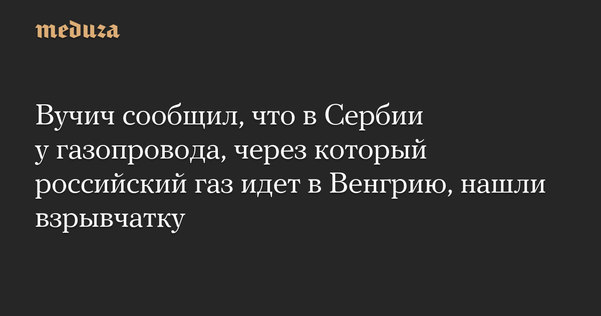 В районе газовой инфраструктуры, соединяющей Сербию и Венгрию, найдена взрывчатка, сообщил президент страны Александр Вучич. Он проинформировал о произошедшем премьер-министра Венгрии Виктора Орбана.