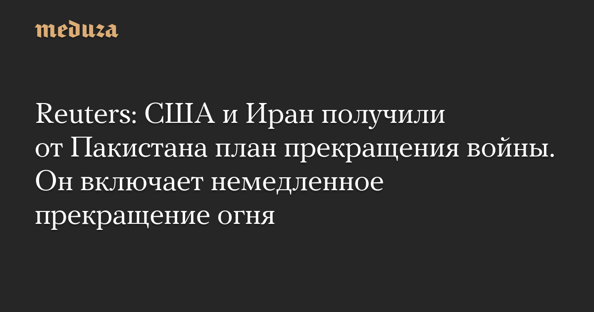 Reuters: США и Иран получили от Пакистана план прекращения войны. Он включает немедленное прекращение огня