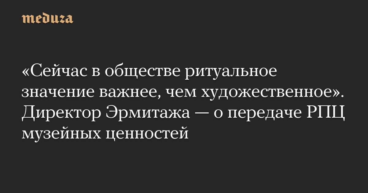 «Сейчас в обществе ритуальное значение важнее, чем художественное». Директор Эрмитажа — о передаче РПЦ музейных ценностей