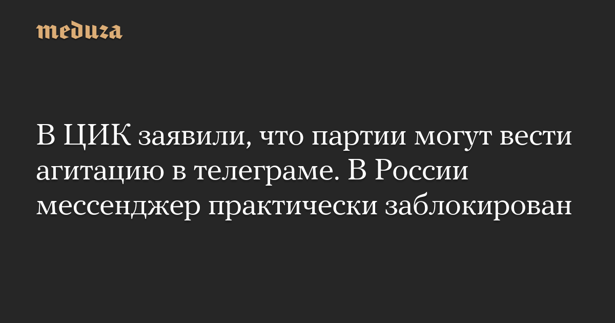 В ЦИК заявили, что партии могут вести агитацию в телеграме. В России мессенджер практически заблокирован