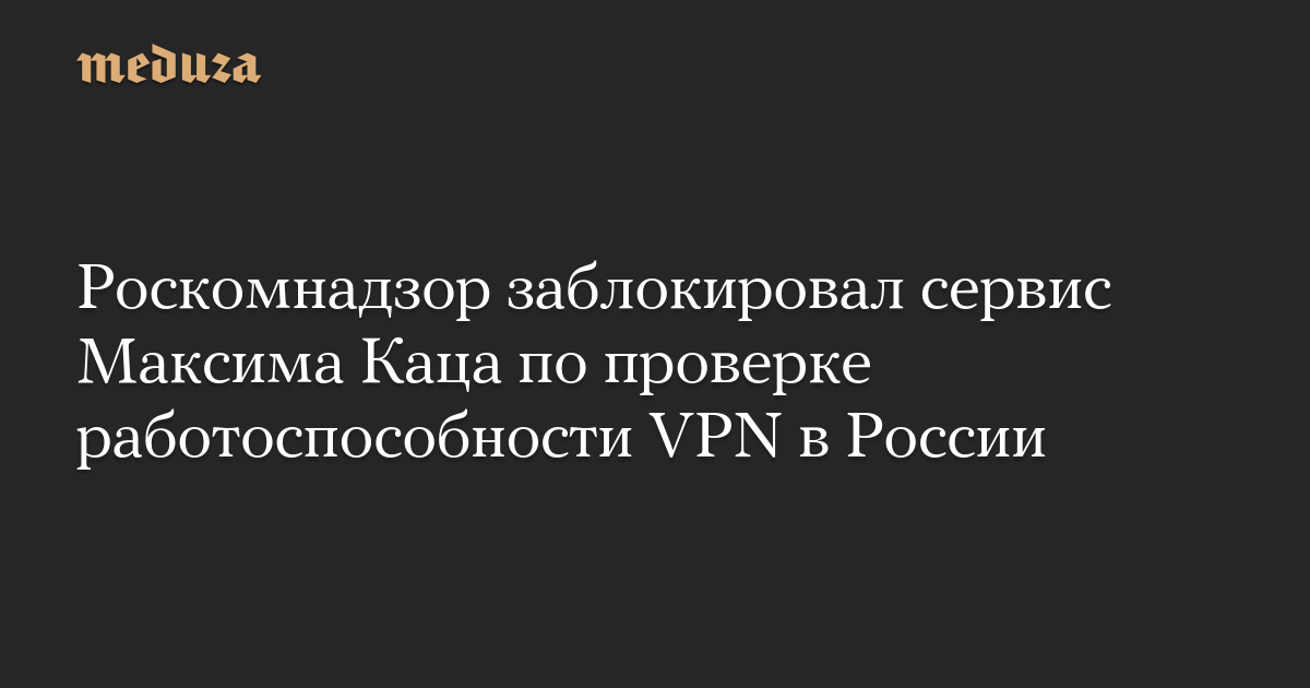 Роскомнадзор заблокировал сервис Максима Каца по проверке работоспособности VPN в России