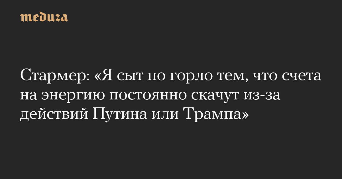 Стармер: «Я сыт по горло тем, что счета на энергию постоянно скачут из-за действий Путина или Трампа»