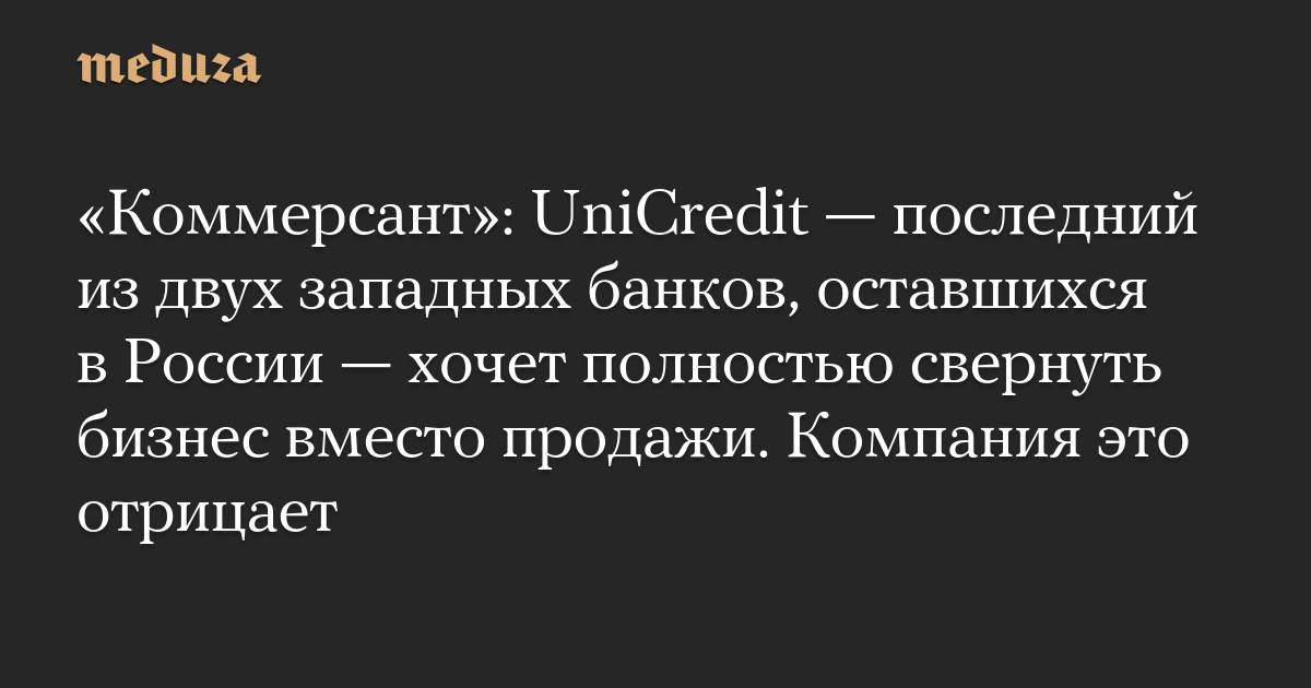 «Коммерсант»: UniCredit — последний из двух западных банков, оставшихся в России — хочет полностью свернуть бизнес вместо продажи