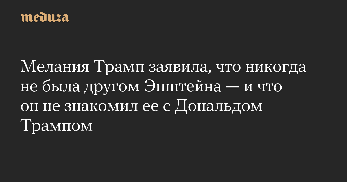 Мелания Трамп заявила, что никогда не была другом Эпштейна — и что он не знакомил ее с Дональдом Трампом