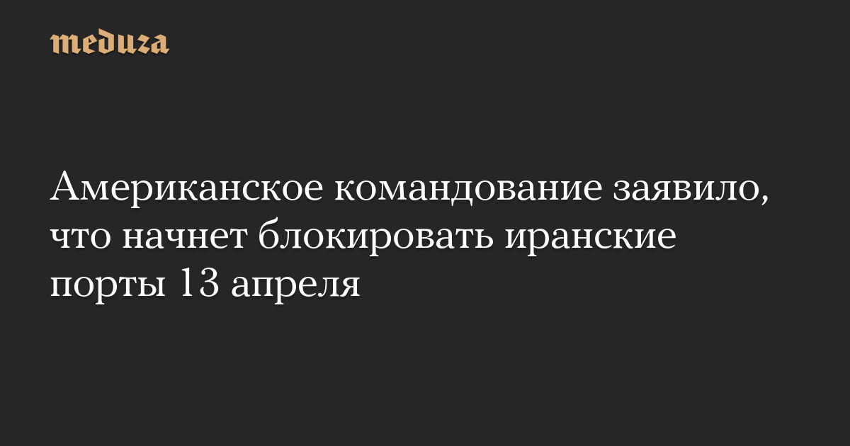 Американское командование заявило, что начнет блокировать иранские порты 13 апреля