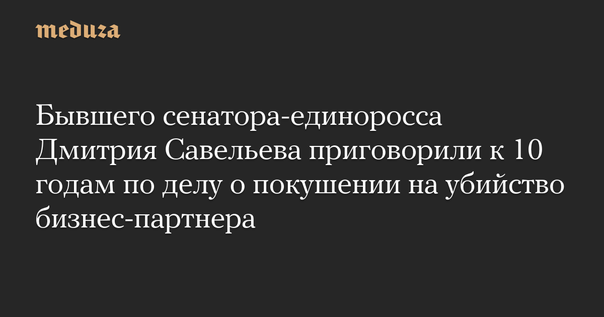 Бывшего сенатора от Тульской области Дмитрия Савельева приговорили к 10 годам лишения свободы в колонии строгого режима по делу о покушении на убийство своего бывшего бизнес-партнера Сергея Ионова, сообщает «Медиазона» 13 апреля.