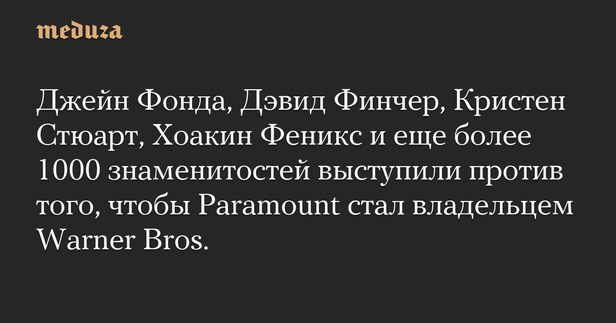 Джейн Фонда, Дэвид Финчер, Кристен Стюарт, Хоакин Феникс и еще более 1000 знаменитостей выступили против того, чтобы Paramount стал владельцем Warner Bros.