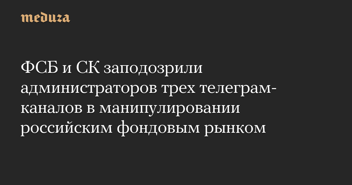 Речь идет о телеграм-каналах «РынкиДеньгиВласть|РДВ», «Волк с Мосбиржи» и «Сигналы РЦБ», «причастных к системному манипулированию российским фондовым рынком». Троих фигурантов дела ФСБ называет «организаторами» телеграм-каналов.