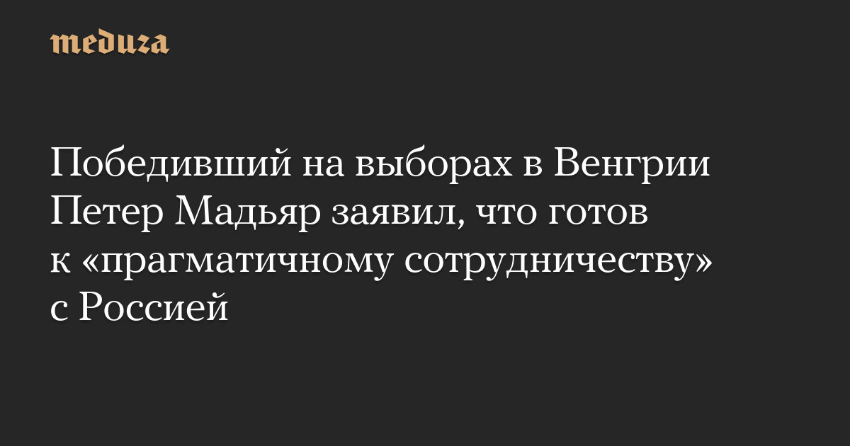 Победивший на выборах в Венгрии Петер Мадьяр заявил, что готов к «прагматичному сотрудничеству» с Россией