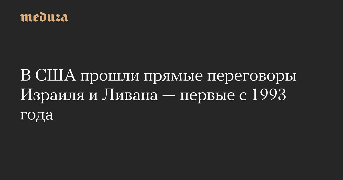 В Вашингтоне начались переговоры между представителями Израиля и Ливана, сообщает The Times of Israel. Это первые с 1993 года прямые переговоры между странами, отмечает «Русская служба Би-би-си»