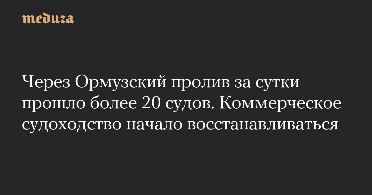 Через Ормузский пролив за сутки прошло более 20 судов. Коммерческое судоходство начало восстанавливаться