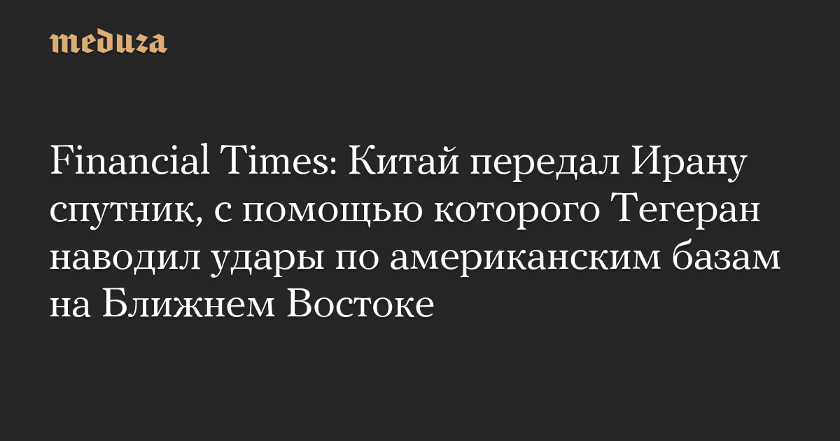 Financial Times: Китай передал Ирану спутник, с помощью которого Тегеран наводил удары по американским базам на Ближнем Востоке