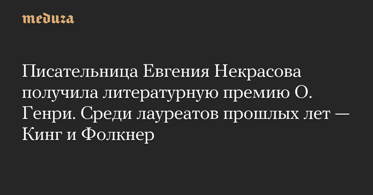 Писательница Евгения Некрасова получила литературную премию О. Генри. Среди лауреатов прошлых лет — Кинг и Фолкнер