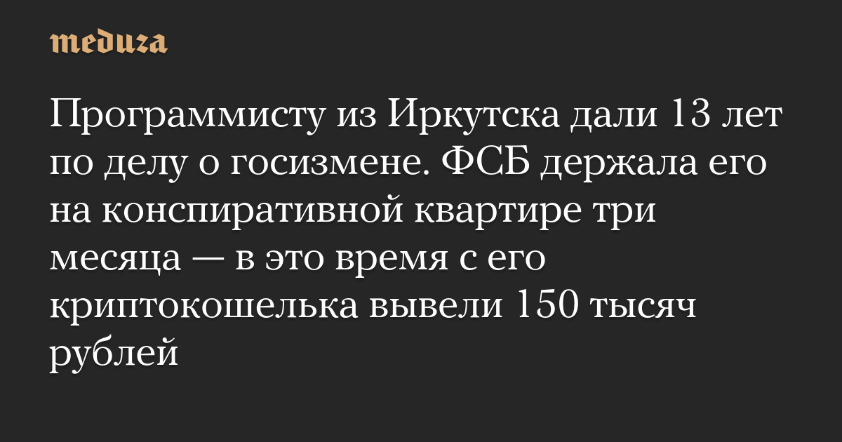 Программисту из Иркутска дали 13 лет по делу о госизмене. ФСБ держала его на конспиративной квартире три месяца — в это время с его криптокошелька вывели 150 тысяч рублей