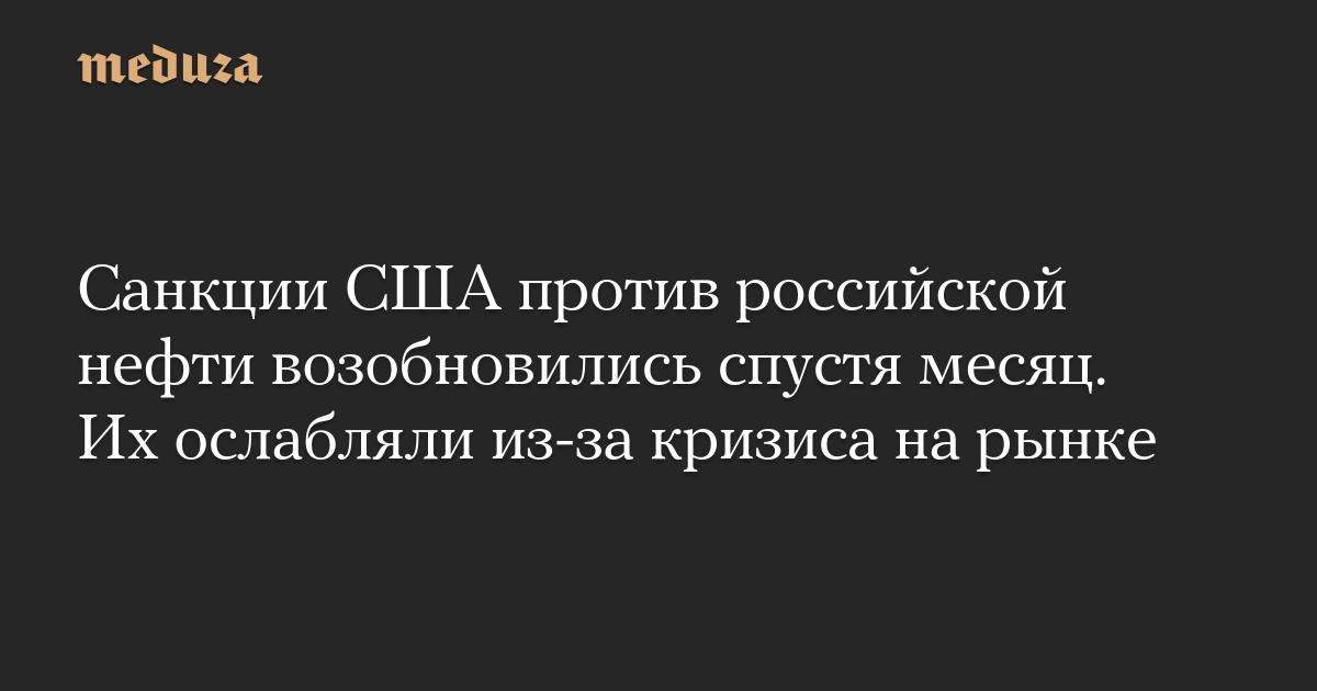 Санкции США против российской нефти возобновились спустя месяц. Их ослабляли из-за кризиса на рынке